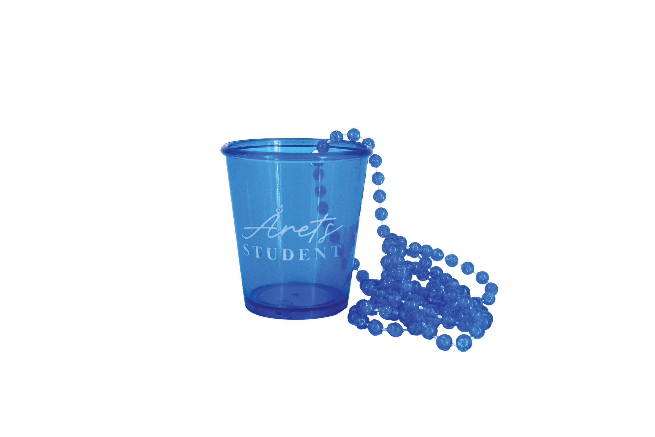 Blå “Årets student” shotglas i halskæde