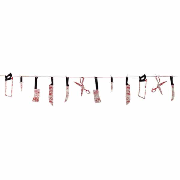 Blodige kniv banner guirlande som er perfekt til halloween og uhyggelig. Pynt rummet og hold et “blodigt” tema til halloween.