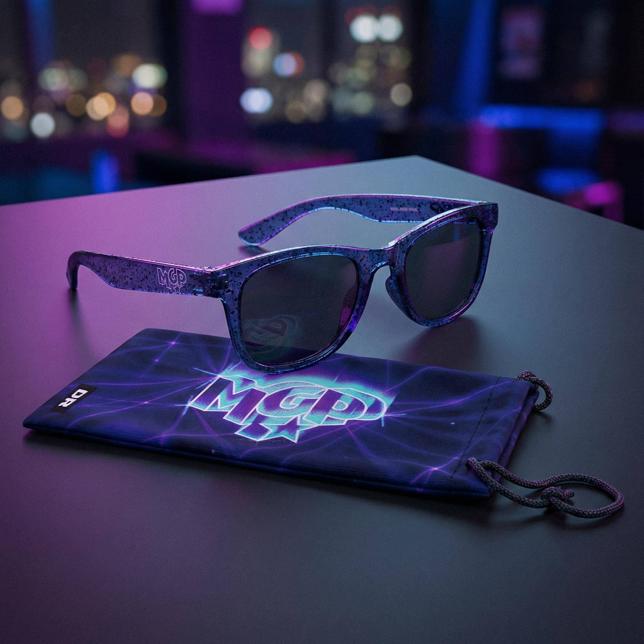 Solbrillerne kommer i et matchende etui med MGP 2026-logo, så du kan tage dem med overalt og beskytte dem mellem alle koncerter og dansepauser.