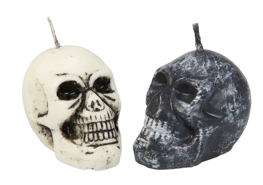 Giv lidt ekstra til din halloween fest med disse to kranier / kranium stearinlys – en i sort og en i hvid – lige til at sætte på bordet og give uhyggelig stemning. Indhold: 1 x sort og 1 x hvid / Mål: 5 cm (H)