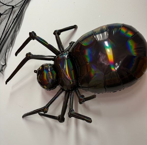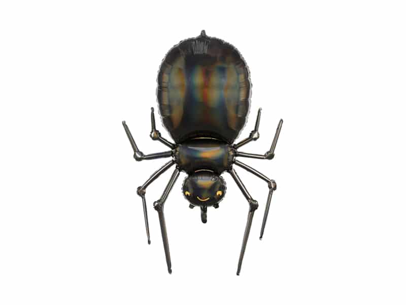 Sort folie ballon formet som en stor edderkop – perfekt som pynt til Halloween festen! Fyld edderkoppen med alm. luft og hæng den op med f.eks. fiskesnøre eller fyld den med helium, hvis den skal svæve.