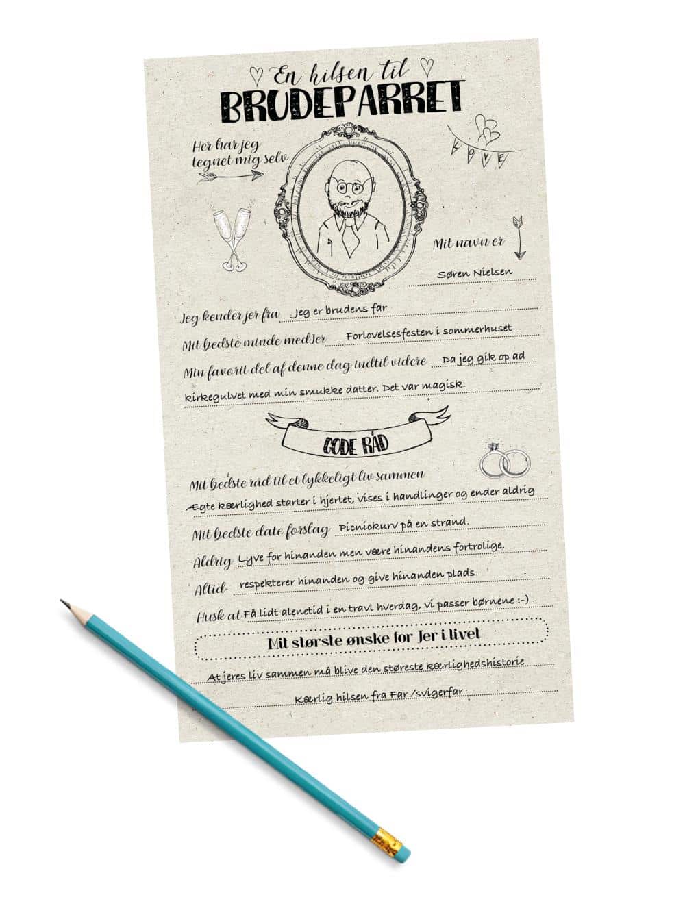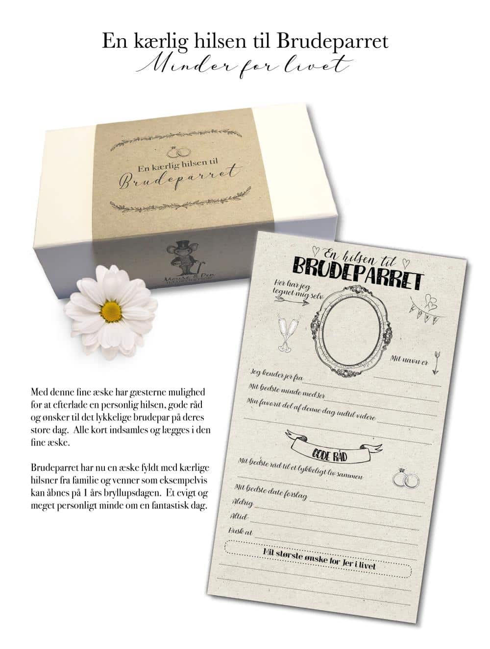 Lav en hilsen til brudeparret og inddrag gæsterne til brylluppet. Perfekt som indslag til brylluppet. hvor hver gæst kan skrive en lille hilsen til brudeparret.