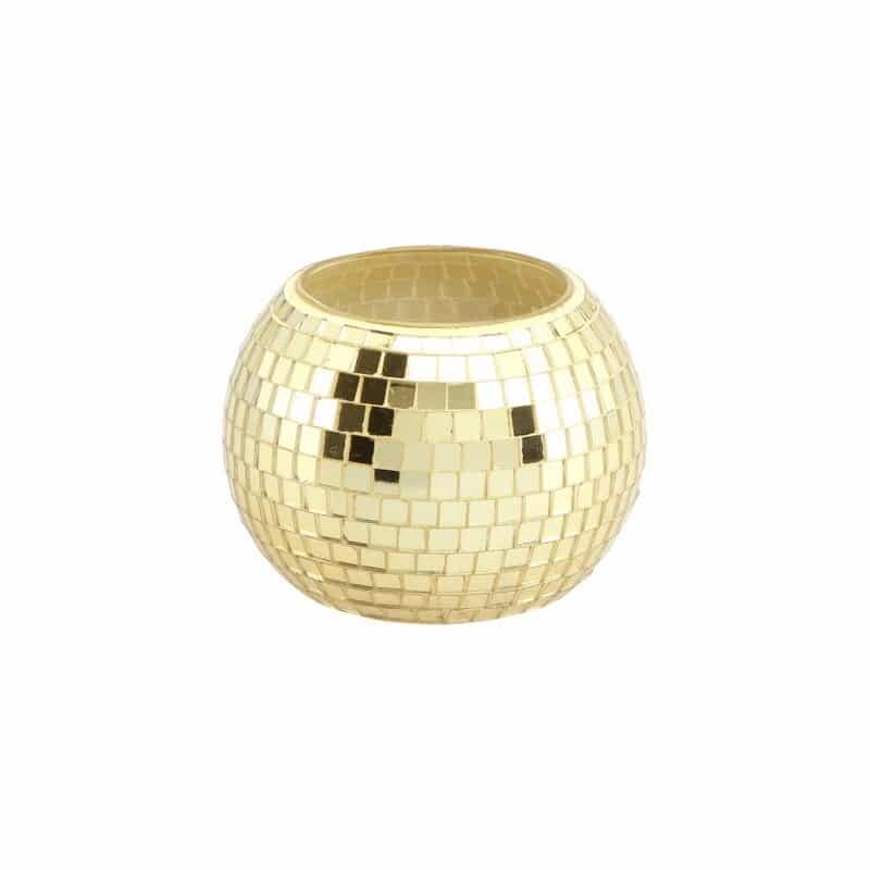 Den runde, spejlmosaik-overflade reflekterer lyset fra fyrfadslyset og kaster det ud i små dansende stråler 🔥🕯️ ideel til at lyse op på nytårsbordet, til fødselsdag, temafest eller en aften, hvor der bare skal lidt ekstra glam til.
