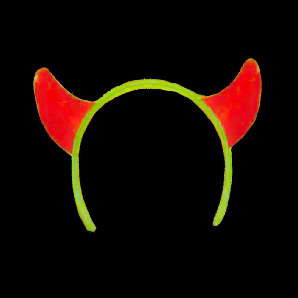 Hårbånd med selvlysende røde horn. Kan både bruges til halloweenfesten eller være lidt festlig når du skal åbne, når børn rasler.