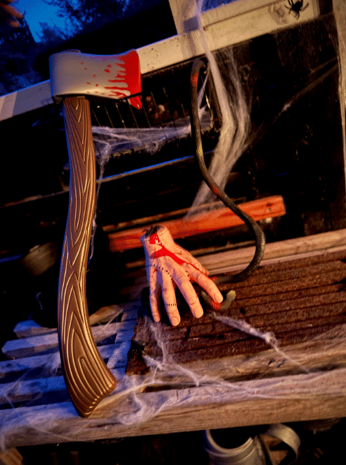 Tilkøb. evt, flask blod, hvis hånden skal have et blodigt udtryk.