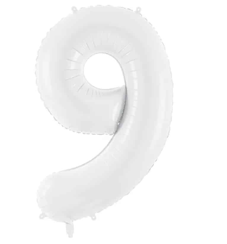 Hvid folie ballon tal 9 (stor)