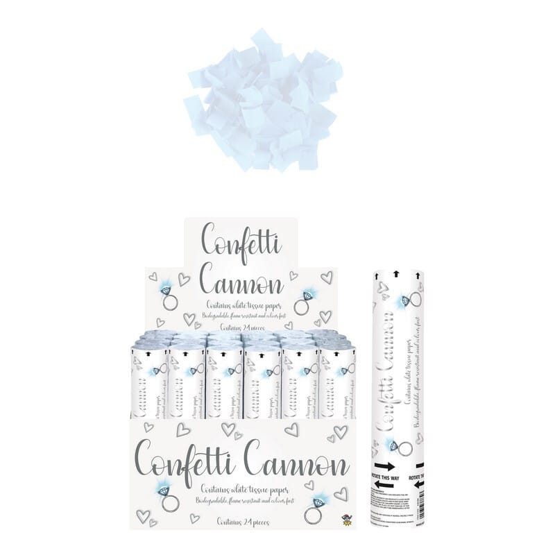 Giv festen et ekstra pift med dette elegante konfettirør fyldt med hvid, bionedbrydelig papir-konfetti. Perfekt til bryllupper, dåb, jubilæer eller enhver fejring, hvor du ønsker et uforglemmeligt øjeblik! Med et hurtigt twist skyder du en sky af let og festlig konfetti op i luften, som daler smukt ned over gæsterne.