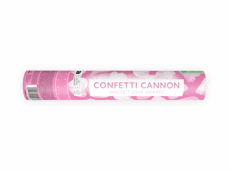 Pop konfettirøret med hvide papir hjerter til fx et bryllup eller på valentinsdag.
