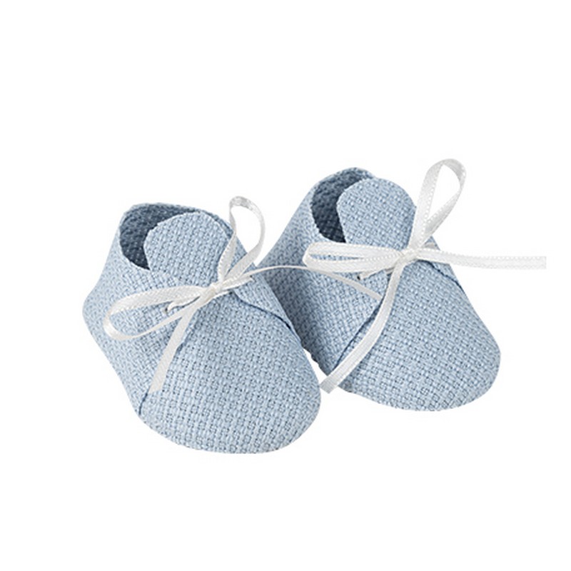 Skab stemningsfulde borddekorationer med disse søde babysko i lyseblå. De fine sko med hvide satinbånd er perfekte til babyshower eller barnedåb, hvor de kan bruges som små beholdere til konfetti eller søde sager.