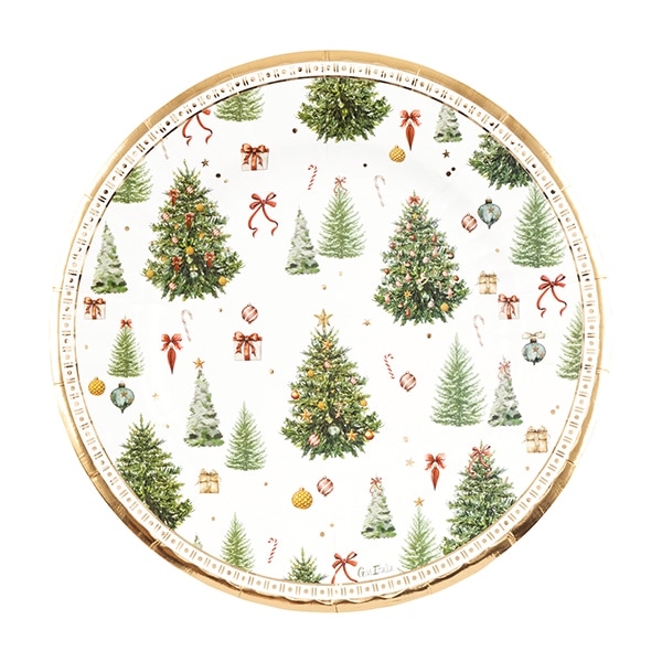 Paptallerken m/juletræer (stor)