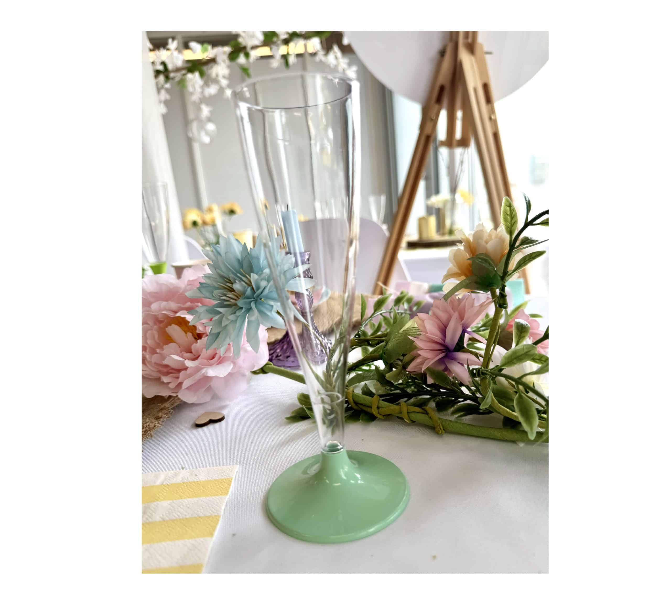 Plast champagneglas m/ pastel grøn fod