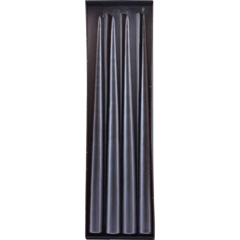 Du får 4 lys i pakken – hver med en højde på 32 cm og en diameter på 2,2 cm. Lysene har en imponerende brændetid på ca. 7 timer, hvor de holder deres flotte form hele vejen ned.