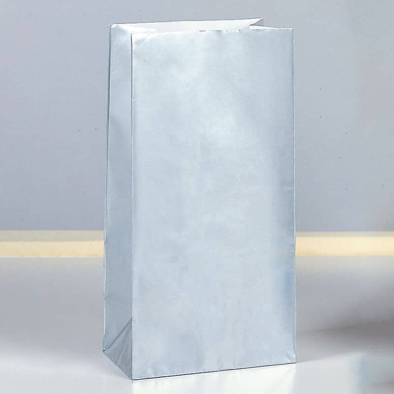 Giv din fest et glimt af glamour med disse stilfulde sølvfarvede papirsposer! Perfekte som goodiebags, slikposer eller små gaveposer – uanset om det er børnefødselsdag, konfirmation, bryllup eller jubilæum.