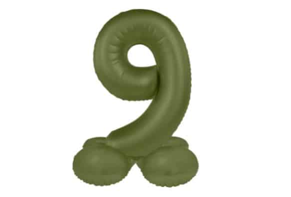 Stående oliven grøn folie ballon tal 9 (stor)
