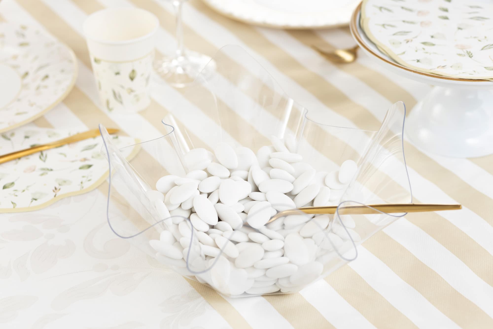 Denne smukke bølget skål i transparent plast sætter et stilfuldt præg på dit bord, uanset om du bruger den til snacks, slik eller dekorationer. Med sit moderne, bølgende design er den både let, praktisk og dekorativ – perfekt til alt fra bryllupper og konfirmationer til fødselsdage og hyggelige sammenkomster.